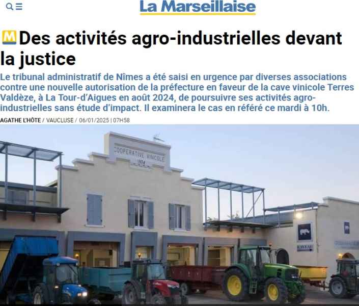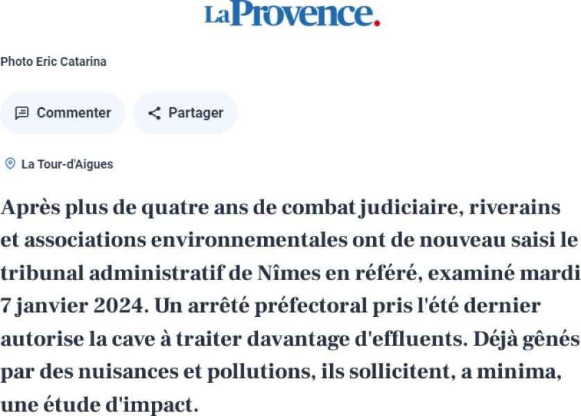 SOS Durance Vivante, l'Association Des Riverains de l'Eze (ADREVE) et leur avocate étaient présentes au Tribunal Administratif de Nîmes ce 7 janvier 2025 afin de demander la suspension du dernier arrêté d'exploitation de l'industriel VALDEZE (cave viticole classée ICPE).